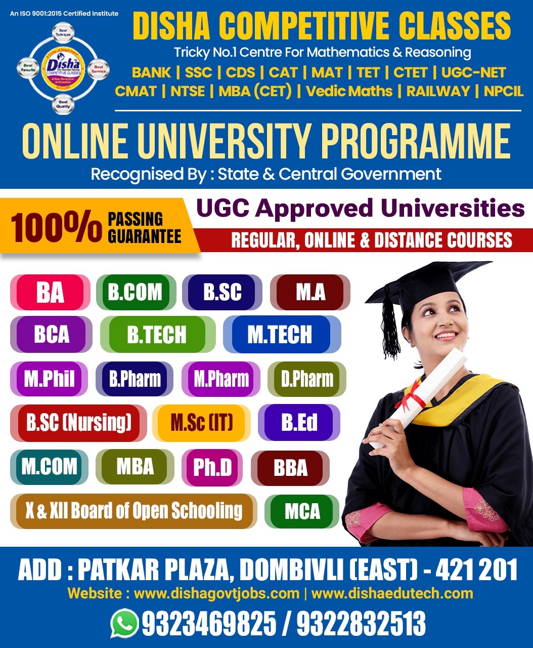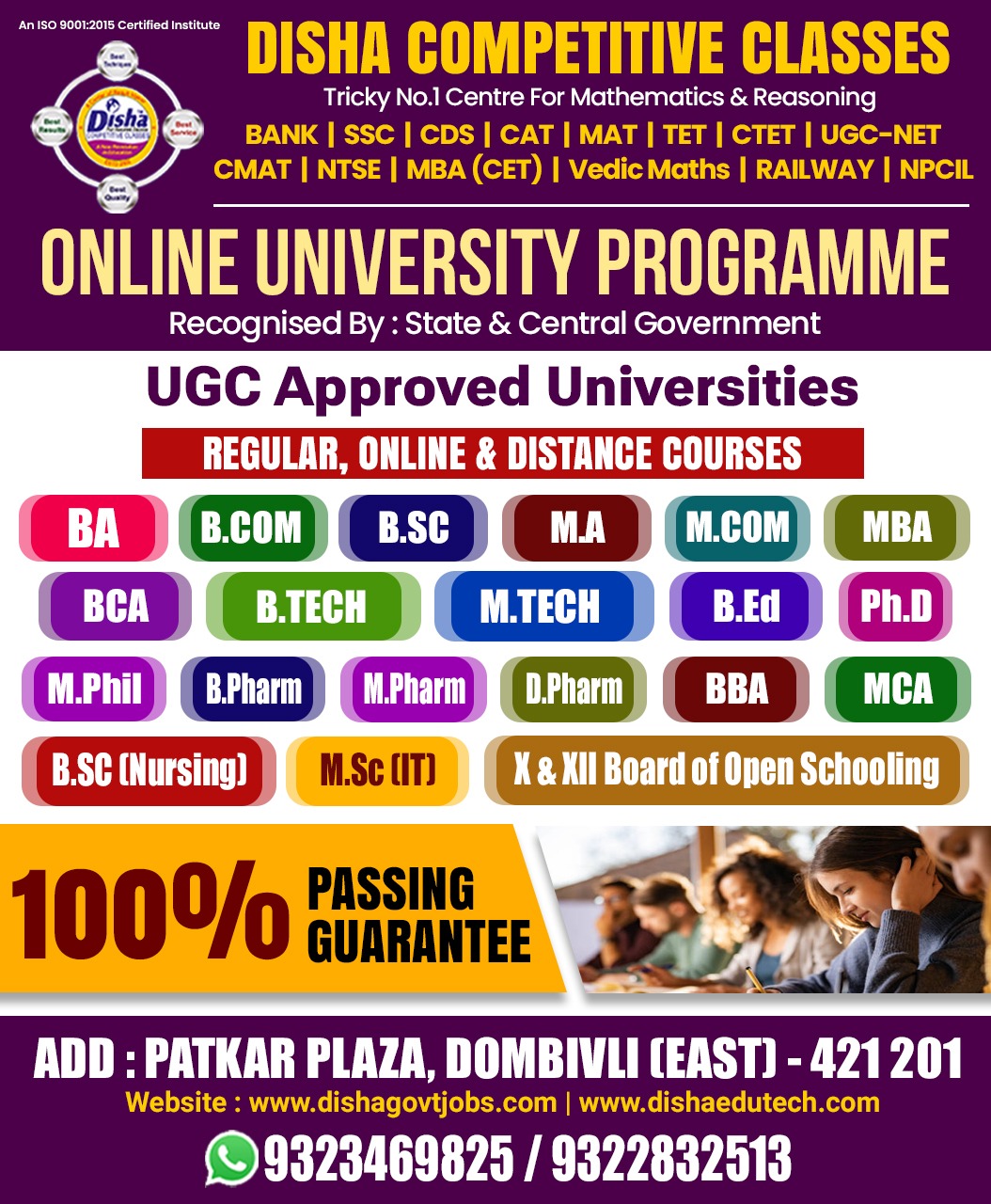 Get yourself enrolled for Direct Admission in all Course from Various Universities. We provide complete solution at DISHA INSTITUTE