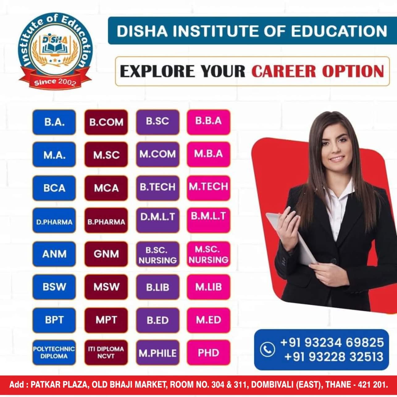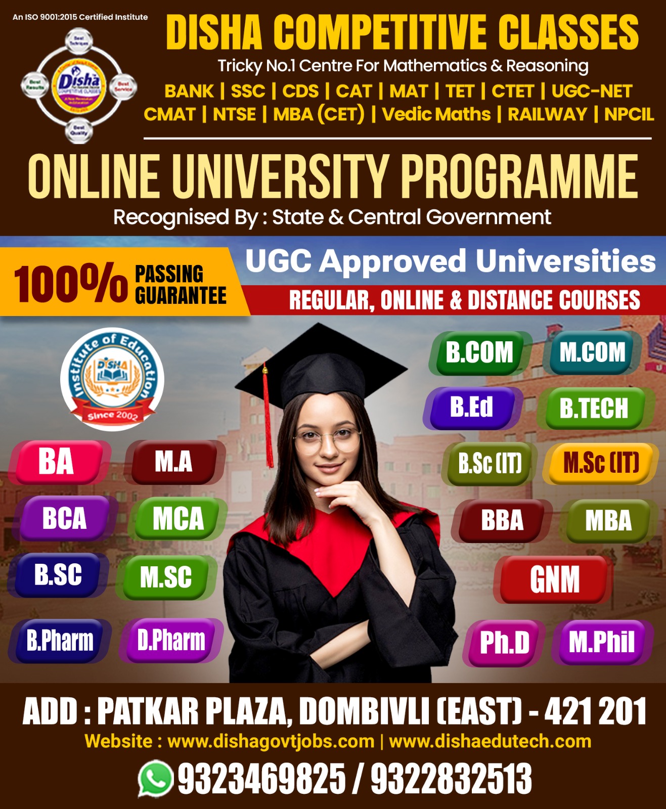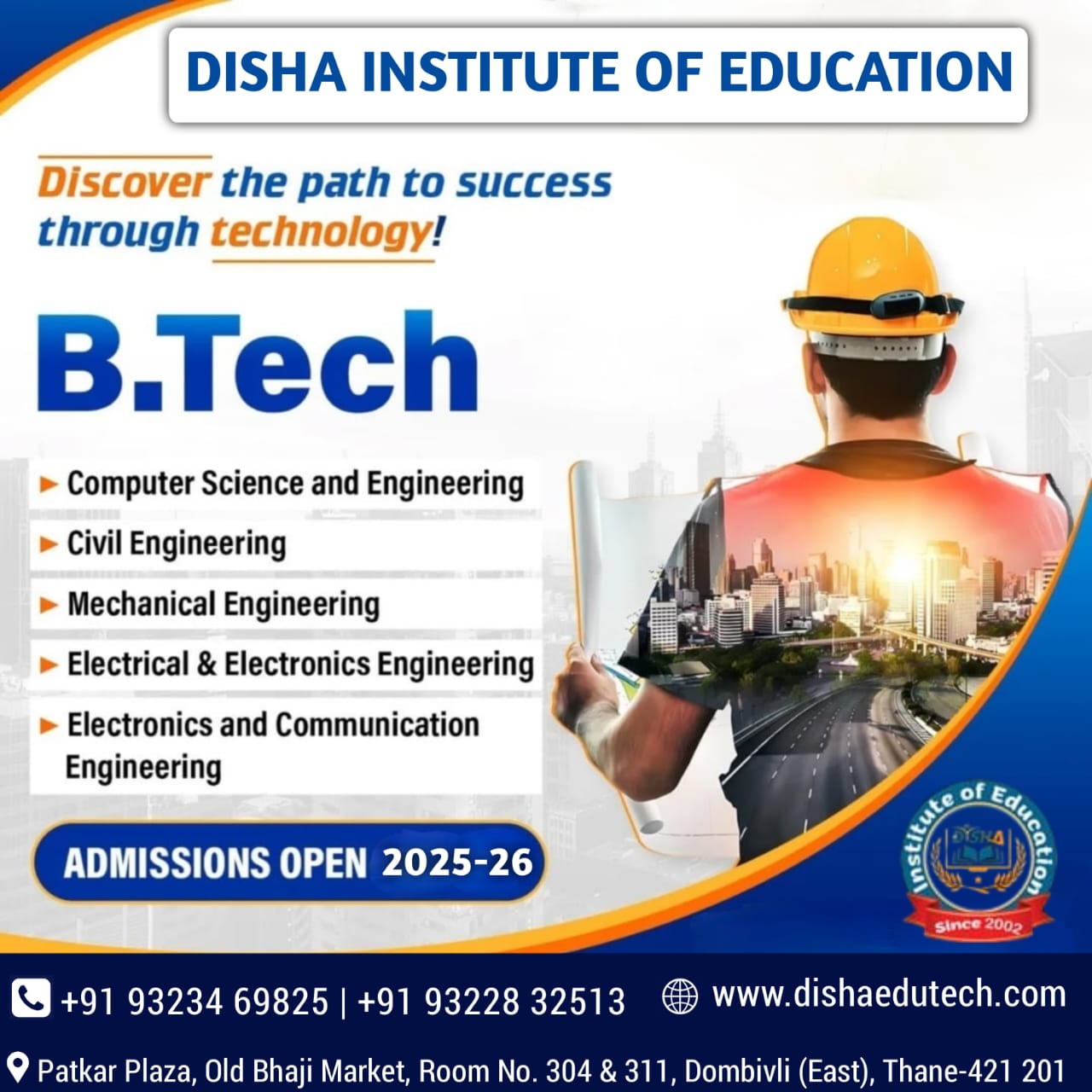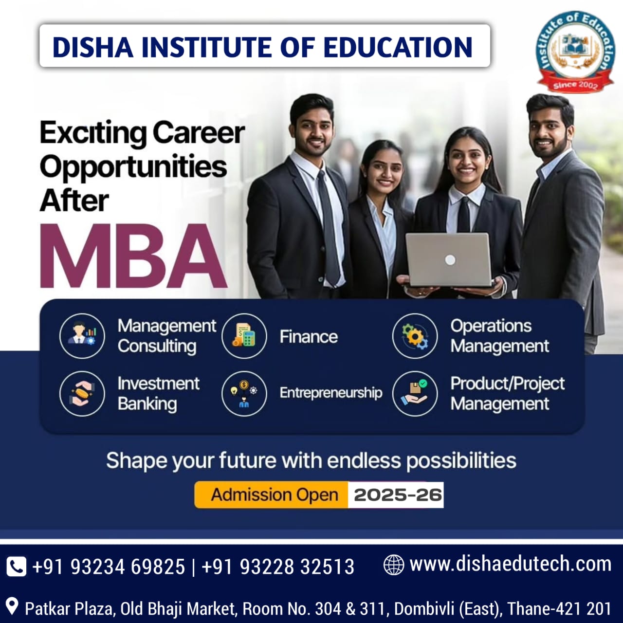 Welcome to the website of Disha Institute of Education. Disha Institute of Education is a dedicated Distance Education advisory and consulting firm situated at Dombivli, Thane, Maharashtra, India. We are committed to deliver best distance education consultancy services through strategic association with internationally accredited universities.